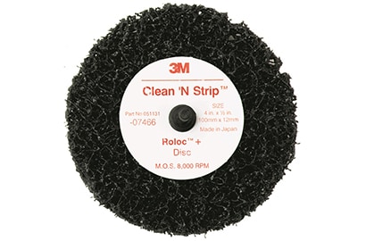 Small amounts of paint or other coatings can remain on the panel following initial prep sanding, especially in “low spots”. To remove them it is important to choose abrasives that are aggressive, yet leave a smooth finish. 3M recommends removing all remaining contaminants using a Scotch-Brite™ Clean and Strip abrasive disc. Next, use a 3-in. grinding disc to remove weld nuggets and other surface imperfections. Blow off the entire vehicle with clean, dry compressed air and re-clean it with surface cleaner.