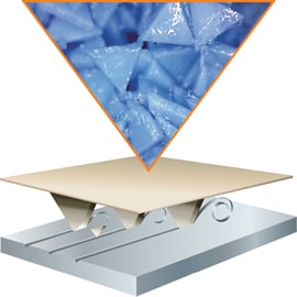 Since most abrasive grains are manufactured with conventional crushing and screening techniques, rather than mined, they come in particles of various shapes and sizes. When these grains are coated onto an abrasive backing, the result is a random distribution of grain that is irregular in shape and size. This irregular cutting surface results in a “ploughing” effect as it cuts through the material. This ploughing causes heat to build up in the workpiece and the abrasive, which dulls the grain, causing it to cut more slowly, reduce consumable life and add time to the grinding process.