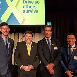 National Road Safety Week is an annual initiative created by the Safer Australian Roads and Highways (SARAH) Group and is supported by Governments, road safety organisations and businesses across the country. Every year, Commonwealth, State and Local Governments in partnership with road safety organisations, campaigners and businesses join forces to shine a light on this deadly issue with events, safety meetings, memorials and displays of yellow ribbons - honouring those we have lost and pledging to make the roads safer for everyone through advancing road safety by highlighting the impact of road trauma and ways we can all work to reduce it. This year, National Road Safety Week took place from 6-12 May 2019, with the national launch kicking off in Brisbane on Sunday 5 May 2019 sponsored by the Queensland Minister for Transport and Main Roads, Hon. Mark Bailey and co-ordinated by Queensland Department of Transport and Main Roads. In recognition of this significant event, the Storey Bridge in Brisbane, as well as numerous other landmarks across Australia were lit in yellow for the duration of National Road Safety Week. Image: left to right - Hon. Minister Mark Bailey MP (Minister for Transport and Main Roads, Queensland), Peter Frazer (President, SARAH Group), Brett Hoskin (Vice Chairman, Road Accident Action Group) and Cade Turner (Business Leader for 3M’s Transportation Safety Division).
